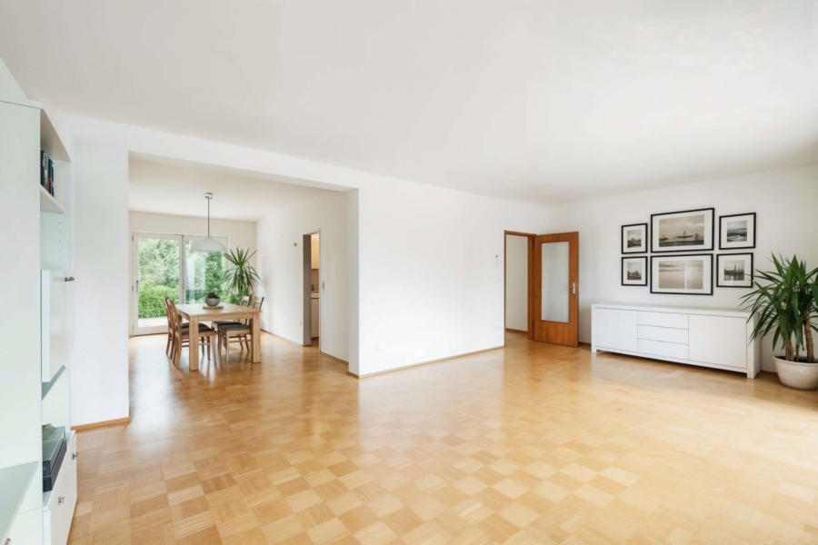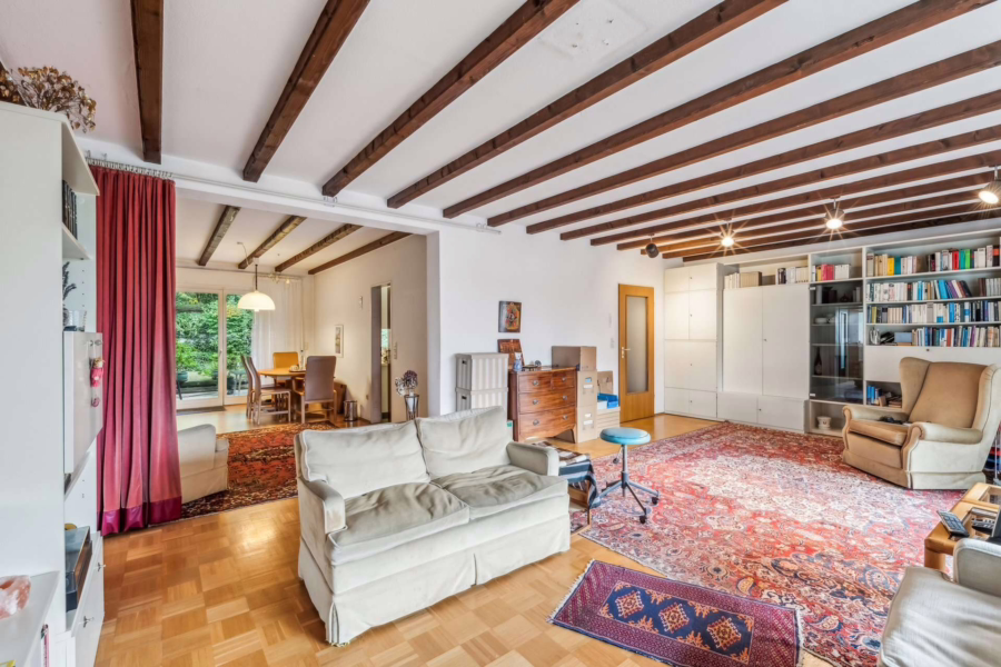 Die bereits freigestellte großzügige Wohneinheit im Ober- und Dachgeschoss bietet mit ca. 226,61 m² Wohnfläche viel Raum für die Familie und Zugang zu mehreren Terrassen mit Blick ins Grüne. Die Einliegerwohnung mit Terrasse im Erdgeschoss mit ca. 87,68 m² wird zum 30.11.2025 freigestellt.