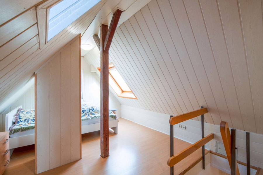 Über zwei Ebenen erstreckt sich diese gemütliche Wohnung mit offenem Wohn- und Essbereich, Küche (Einbauküche Eigentum des Mieters), Schlafzimmer und Bad auf der unteren Ebene sowie einem behaglichen Raum unter dem Dachspitz, der zur Nutzfläche zählt und aktuell als Gästezimmer genutzt wird. Seit 2022 an einen soliden Mieter vermietet. Die Kaltmiete beträgt 600€.