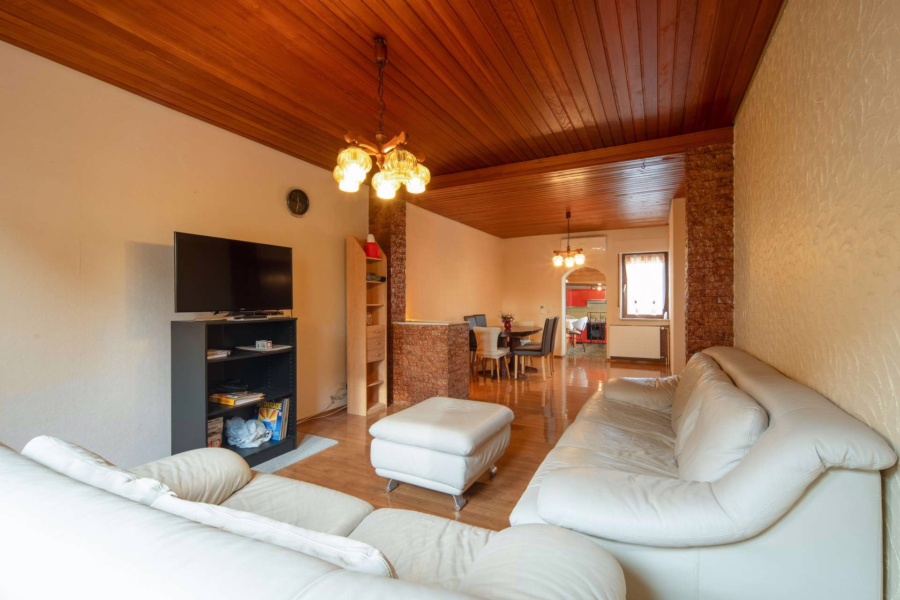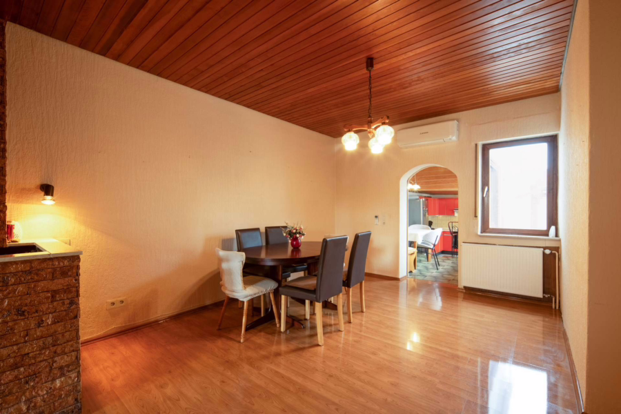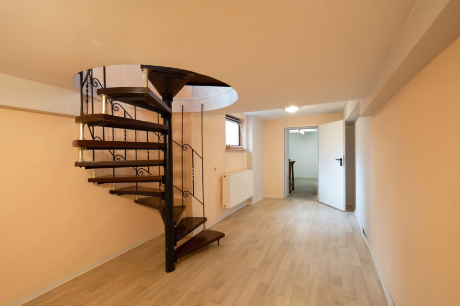 Im Kellergeschoss stehen ein Hobbyraum und vier weitere Abstellräume zur Verfügung – ideal für Lager, Hobbys oder Vorräte. Im gepflasterten Innenhof bietet ein ehemaliger Stall zusätzliche Nutzfläche, während eine Garage und zwei Stellplätze im Hof das Angebot abrunden. Die Gesamtnutzfläche liegt bei rund 130 m². Hof und Garten wurden bislang vom Vermieter genutzt, von den anderen Parteien nach Rücksprache.